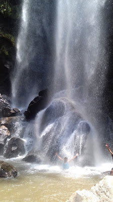 cachoeira. A cachoeira é linda também, própria para ficar bem embaixo dela, tem