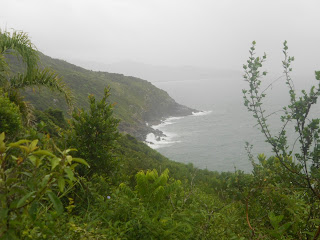 da encosta, logo começou a chover, a chuva ainda era leve. A vista já nos